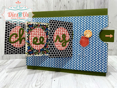 Hi there, I tried my hand with the Karen Burniston Triple Flip card using more Karen Burniston die sets to compliment the card. I used some bold pattern paper to create a "happy" hour kinetic card. I followed Karen Burniston's Triple Flip assembly video even though I have previously used this die set. I find a refresher of the details are helpful. The front panel needs to be 5.5" so I used an A2 size card base.