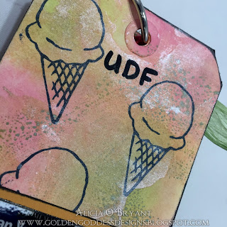 The next block down has the Elephant Walk, a combination of Indian and Ethiopian food. I prefer Indian but am in love with injera, yum! On this tag I used shimmer mist and added some tabs to divide the two different foods.